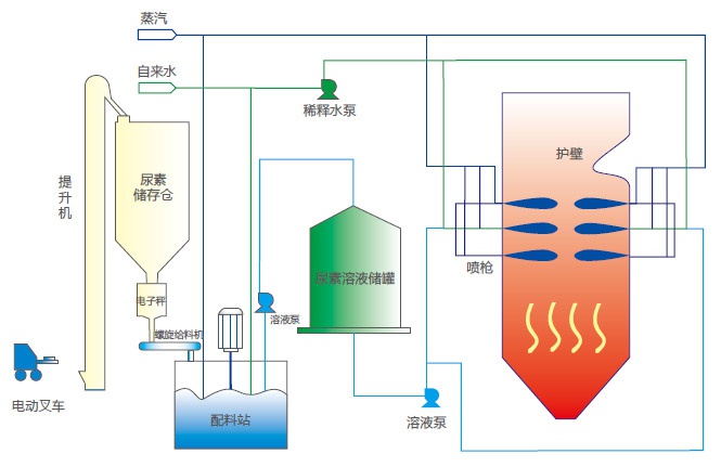2、相對于傳統SNCR煙氣脫硝系統,本系統既可以采用氨水作為還原劑,又可以采用尿素作為還原劑,一套脫硝裝置可以實現兩種還原劑的互換;