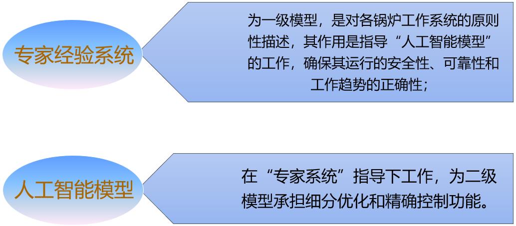 5 從模型應(yīng)用管理和應(yīng)用來說,“專家系統(tǒng)”和“人工智能模型”采用分級管理并具有不同分工:其中“專家系統(tǒng)”為一級模型,是對各工業(yè)系統(tǒng)的原則性描述,其作用是指導(dǎo)“人工智能模型”的工作,確保其運行的安全性、可靠性和工作趨勢的正確性;“人工智能模型”在“專家系統(tǒng)”指導(dǎo)下工作,為二級模型承擔(dān)細(xì)分優(yōu)化和控制功能。